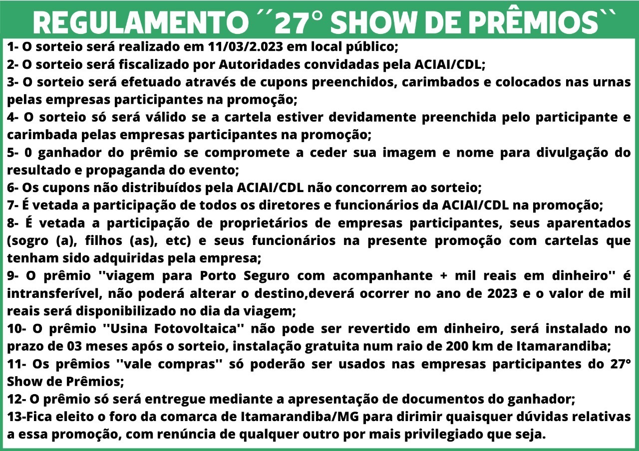 Regulamento do 27° show de Prêmios ACIAI/CDL