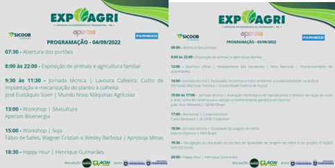 Nos dias 03 e 04 de setembro Itamarandiba sediou a maior Feira Agropecuária e de agronegócios do Alto Jequitinhonha, a EXPOAGRI APERAM 2022 realizada pela Aciai/CDL e Sindicado dos produtores agrícolas de Itamarandiba. As empresas puderam ter um lugar de destaque dentro do Pavilhão Comercial ACIAI/CDL e também nos estandes exclusivos para trabalharem suas marcas, expor seus produtos e aproveitar ao máximo esse mega evento. O principal objetivo desse evento é a apresentação de inovações para o desenvolvimento do agronegócio do município e região. Dentre as atrações tiveram presença da agricultura familiar municipal e regional, exposição de maquinários agrícolas, pró-genética-exposição de animais, inovações tecnológicas para o agronegócio, condições especiais para realização de negócios, concurso de produção de qualidade de silagem de milho.