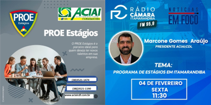 Aciai CDL se tornou parceira da Proe Estágios, um Programa de Complementação educacional, permitindo às empresas e profissionais liberais a inscrição de estagiários oferecendo bolsas. Permite ao empresário cumprir seu papel social, garantindo para formar as novas gerações de profissionais com rapidez e dinamismo que as empresas precisam. O estágio não cria vínculo empregatício e não gera encargos trabalhistas. A empresa que contrata cria um ambiente favorável à sua complementação educacional, preparando-o adequadamente para o mercado de trabalho. Como vantagem para o empresário, entre outras, o custo comparado a um funcionário normal, se torna muito barato. Ótima oportunidade para as empresas terem a oportunidade de formar sua mão-de-obra.